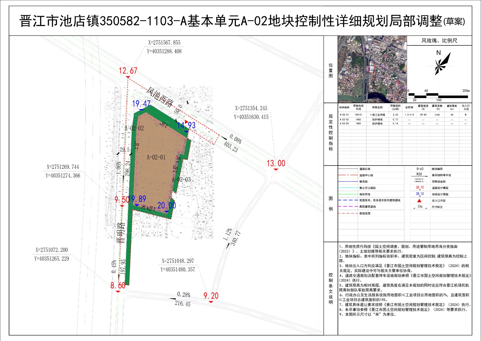 因城市發展建設、國土空間管理和使用需要,組織編制了《晉江市池店鎮350582-1103-A基本單元A-02地塊控制性詳細規劃局部調整》方案。規劃方案于2025年11月6日由我局組織部門和專家評審并審查通過,擬提報晉江市人民政府批準。現根據《中華人民共和國城鄉規劃法》,將規劃草案予以批前公告、征求公眾意見(最終圖紙以批復為準)。具體如下: