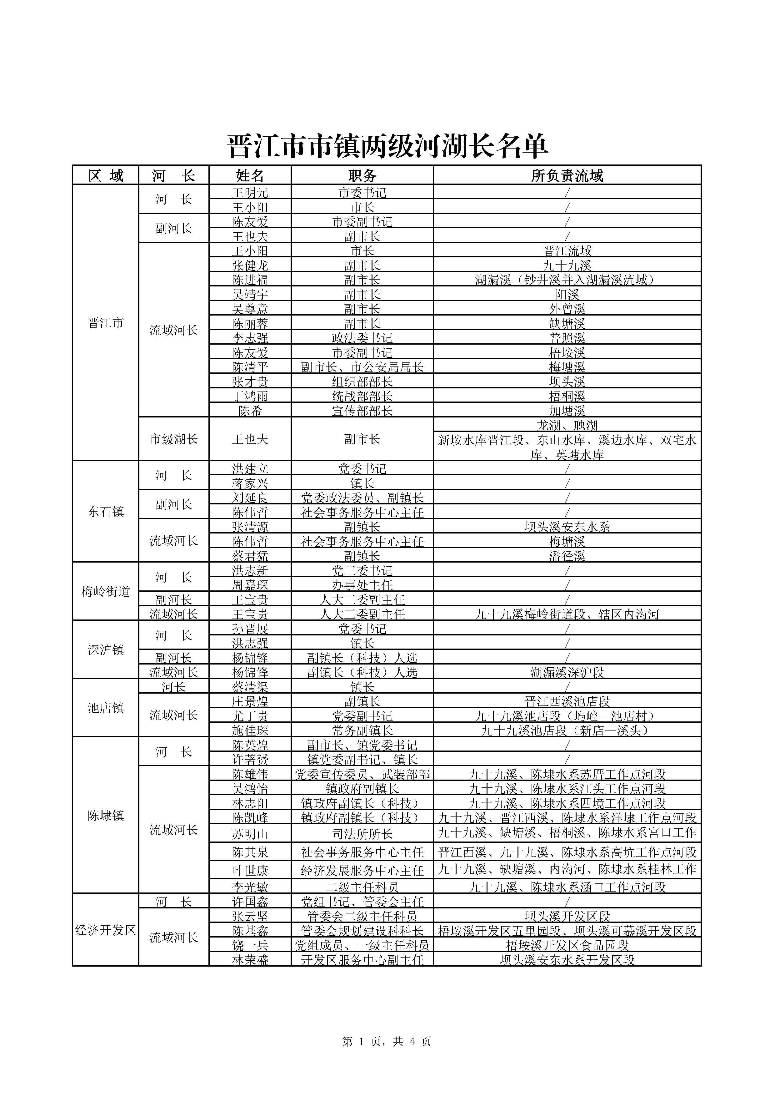 晉江河(湖)長名單(2026年1月更新)
