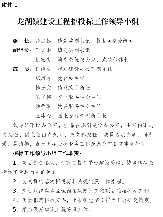 附件:1.龍湖鎮(zhèn)建設(shè)工程招投標(biāo)工作領(lǐng)導(dǎo)小組