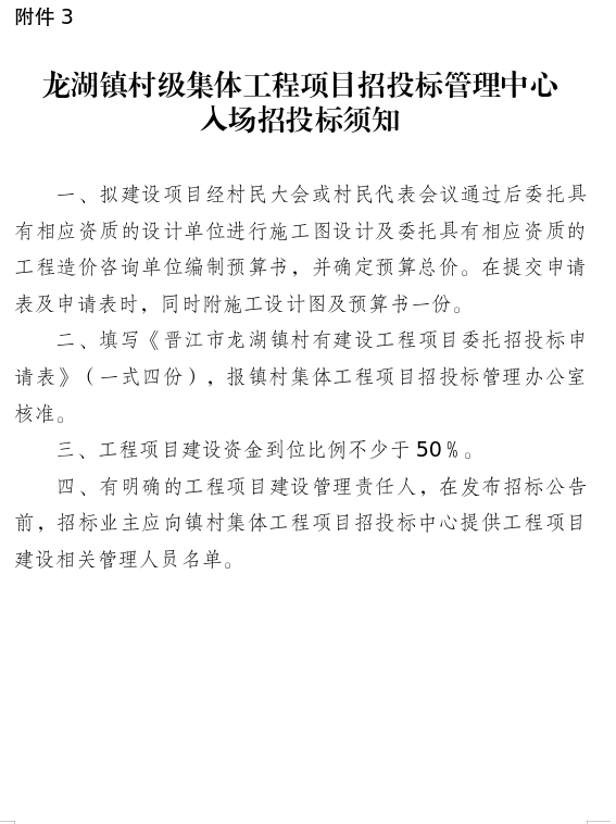 3.龍湖鎮(zhèn)村級集體工程項目招投標(biāo)管理中心入場