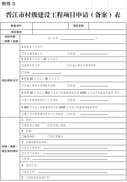 5.晉江市村級建設(shè)工程項目申請(備案)表