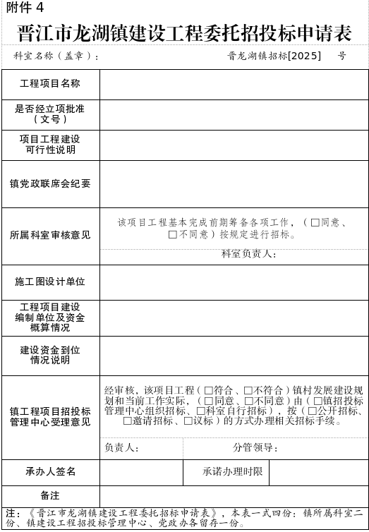 4.晉江市龍湖鎮建設工程委托招標申請表